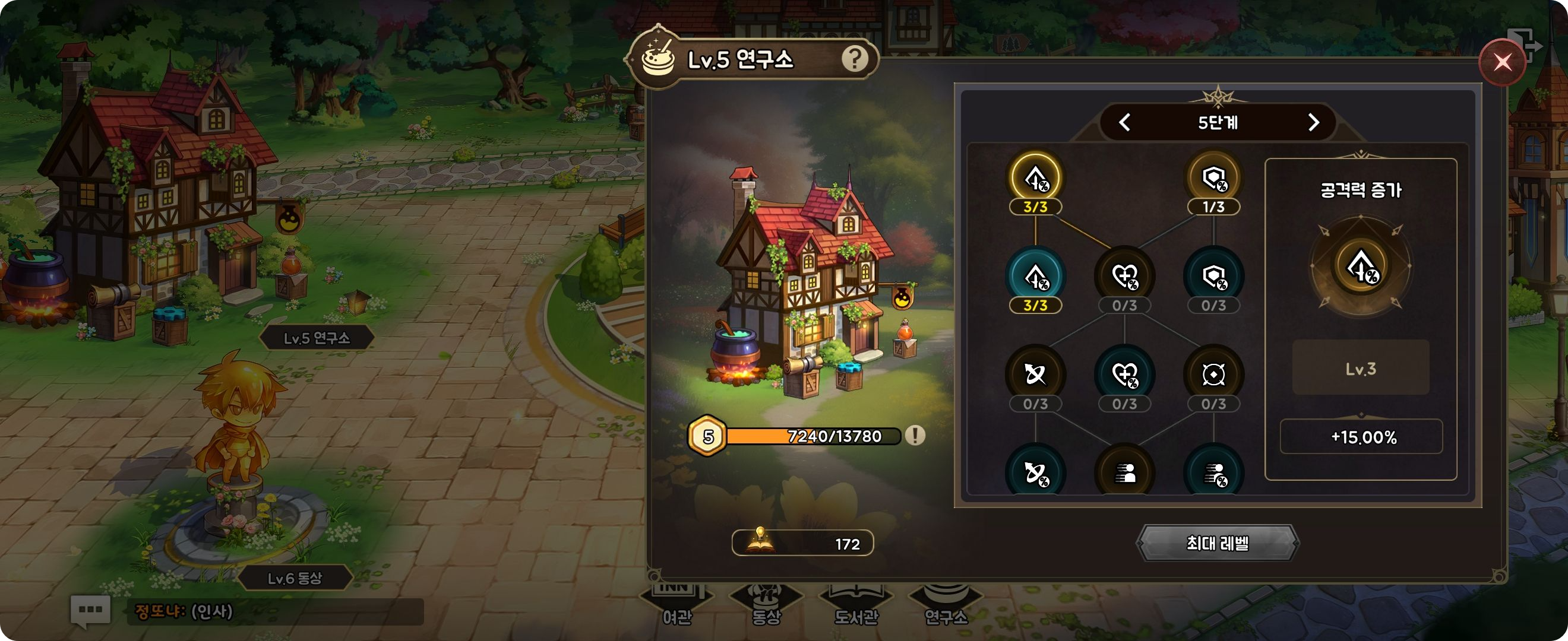 그 외 영지활동으로 동상 및 연구소로 전투력을 뻥튀기할 수 있어요.