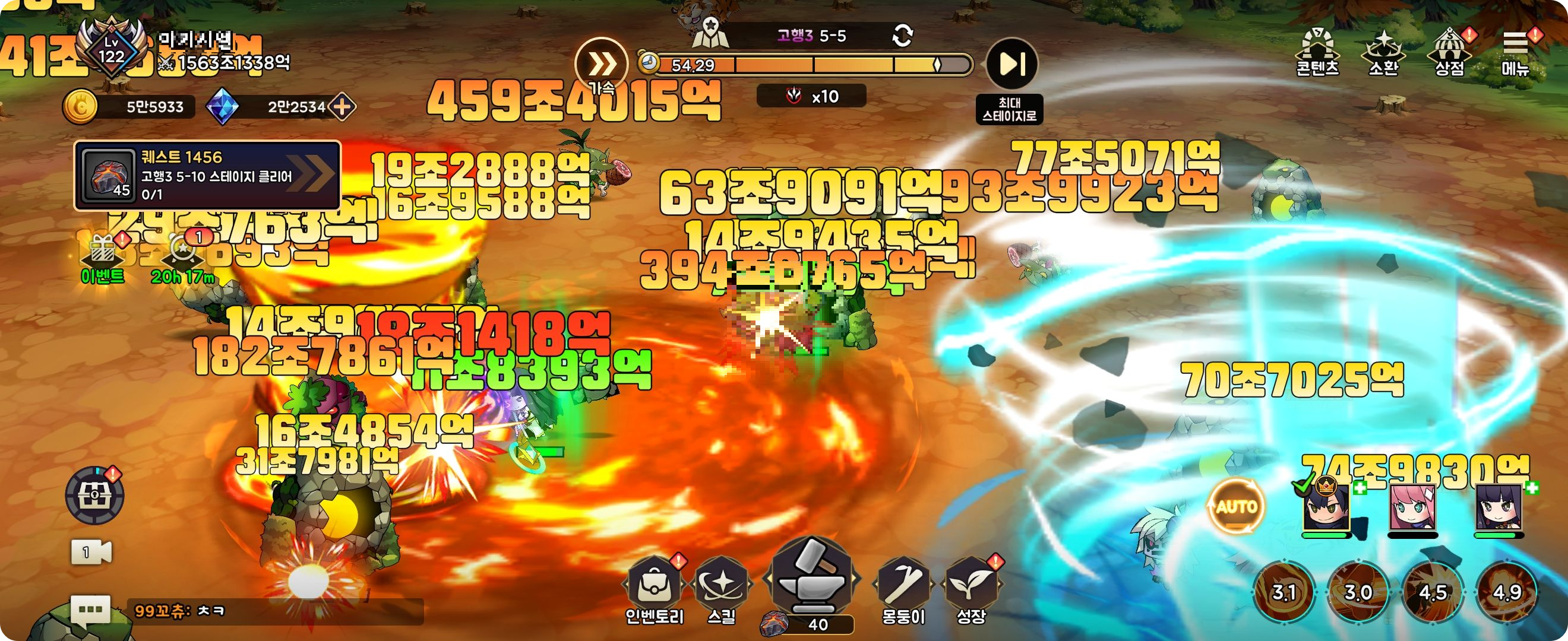 제 화면은 스킬이 화려한데 캐릭터들과 몹은 귀여워요~