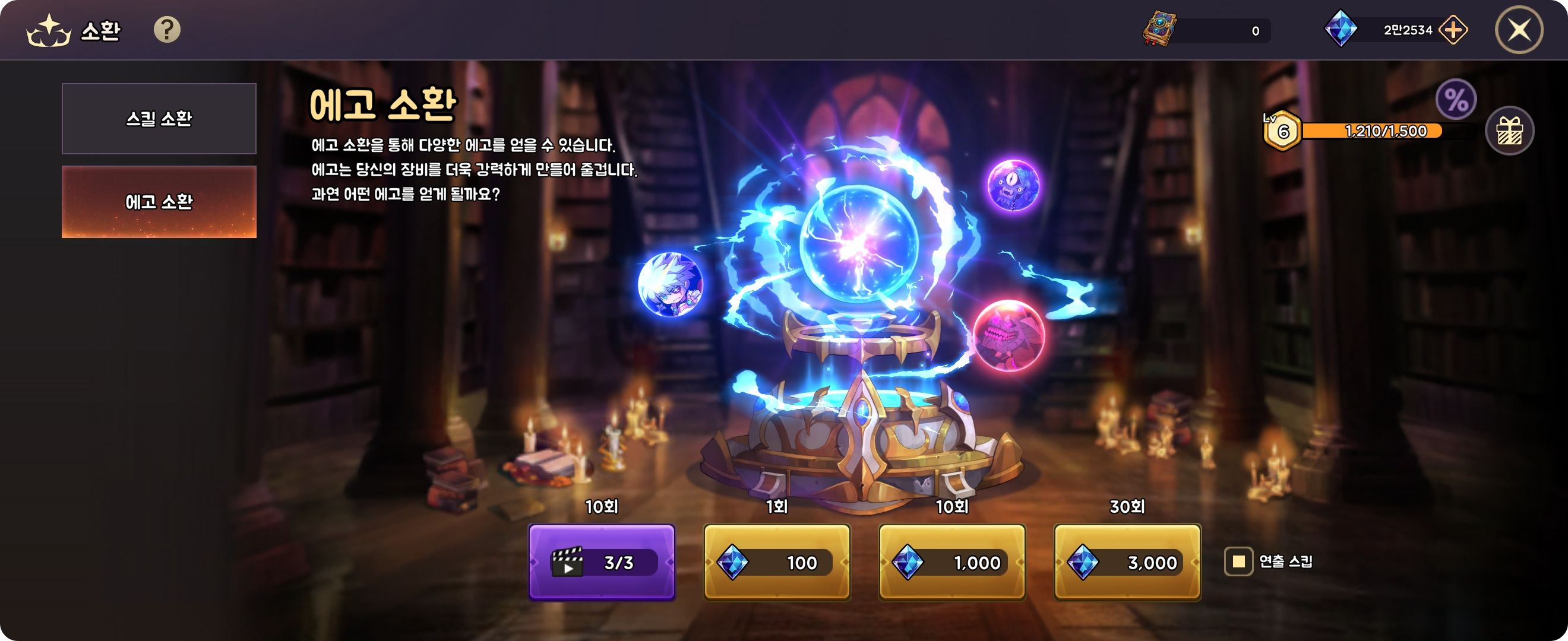 스킬소환과 에고소환도 전투력을 아주 많이 올려줘요!!