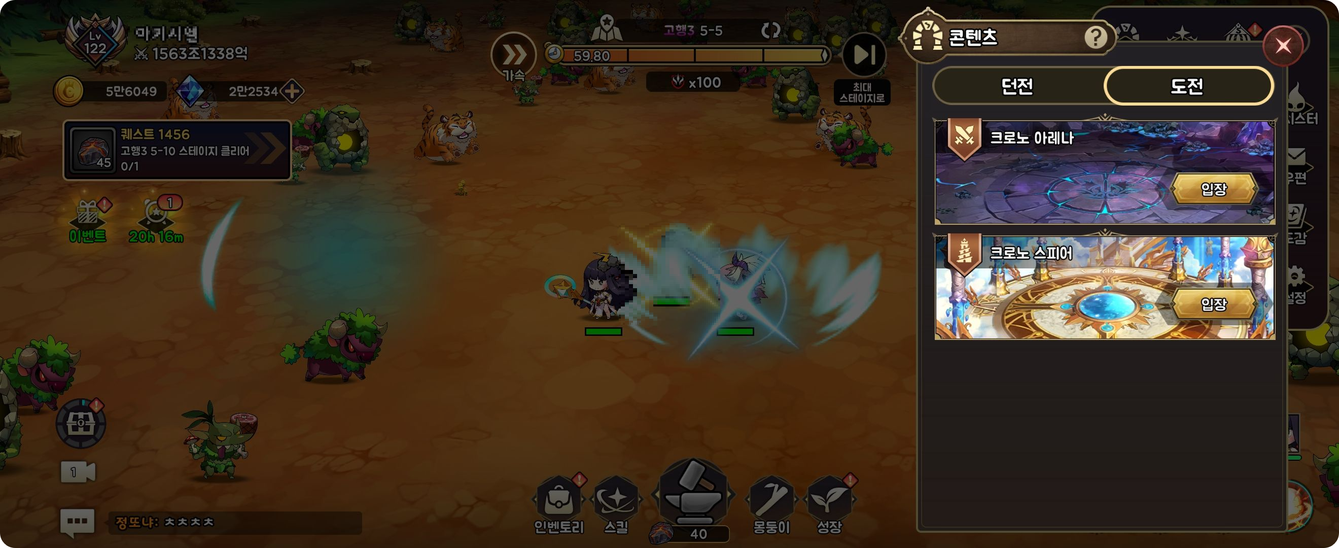 그 외에 크로노 아레나로 다른 유저와 붙을 수 있고,